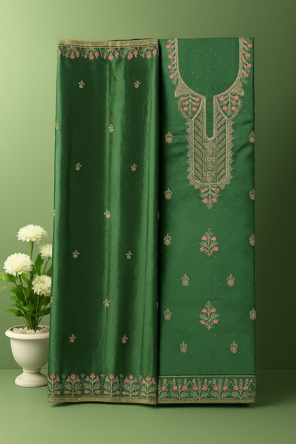 Elevate your ethnic wardrobe with this exquisitely embroidered salwar kameez set, crafted from premium fabric for a luxurious drape. The delicate zari work and floral motifs add timeless elegance, while the soft shimmer enhances its festive charm. Perfect for weddings, celebrations, and special occasions, this ensemble blends traditional artistry with modern grace—making you the center of attention wherever you go.